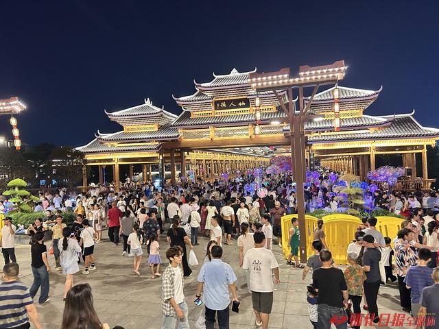 假期里,怀化“一轴四点”“三江一湾”多个特色景点成为游客打卡热门地,玩法各异的体验吸引众人驻足。榆树湾文旅商综合体从早上开始迎来游客,杂技演员为游客表演“爬杆”“蹬技”等绝活,吸引了不少游客的目光。怀化东盟集则以“异域风情+特色消费”引爆假日热潮,精彩马戏表演、篝火晚会轮番上演,还推出冬阴功汤、海南鸡饭、越南春卷等美食盛宴,市民不出国门便能感受怀化与东盟的文化交融。夜幕降临,榆树湾、天问岛、东盟集打开五光十色的彩灯,璀璨的夜景引来客流高峰,精彩的节目让游客欢呼阵阵。新获评国家4A级景区的中方县荆坪古村,青石板路上游人如织,农家乐座无虚席,“千年古驿·乐归荆坪”的魅力持续释放。