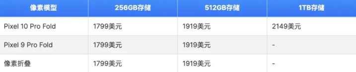 另一款在美国销售的书本式折叠手机是谷歌Pixel 10 Pro Fold。从这款机型开始,我们经历了三代:原版Pixel Fold、Pixel 9 Pro Fold和Pixel 10 Pro Fold: