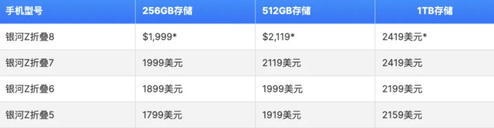 可折叠iPhone将直接成为2026年折叠手机的竞争对手。其中一个例子是Galaxy Z Fold 8。不过这款手机尚未正式发布,因此我们无法确定其定价。幸运的是,三星已经发布了相当多的折叠手机,包括7代的Galaxy Z Fold。以下是三星最近对Galaxy Z Fold机型定价的进展情况: