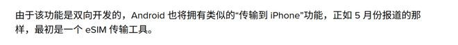 并且这个活儿不光是苹果在做,对面的安卓也在打配合,不光得接住iOS那边传过来的数据,自己未来也会有一个“传输至iPhone”的App,史诗级合作了属于是。